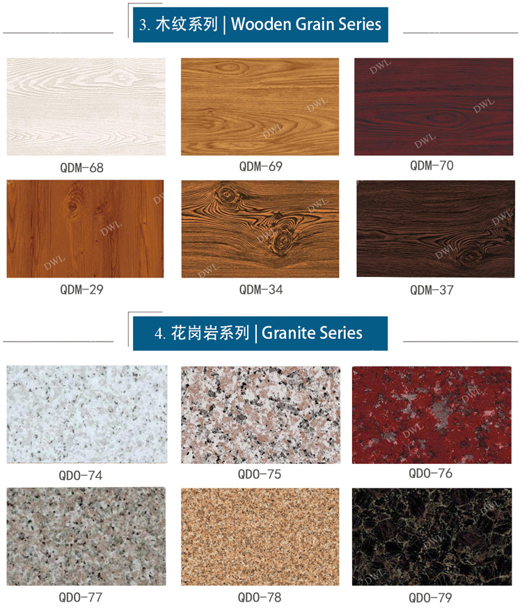 DWL panel, the international light-weight walling material, integrates decoration, insulation, energy-efficiency, fire-proof together. Its metal surface can be designed and embossed into all kinds of styles: brick, marble, wood, monochrame etc. and there are more than 100 kinds of color for you to choose from. The core layer is polyrethane foam which is independent airtight foaming structure. It can effectively insulate the heat and sound (Thermal conductivity:0.024W/M.K). The fire-resistant grade has reached to the B1. The back material is Aluminum foil layer, which can reflect the heat back. The three layers of material is formed together by auto machine, and the structure is stable. The installation of DWL panel is very simple and convenient, and the installation cannot be influenced by weather and climate.