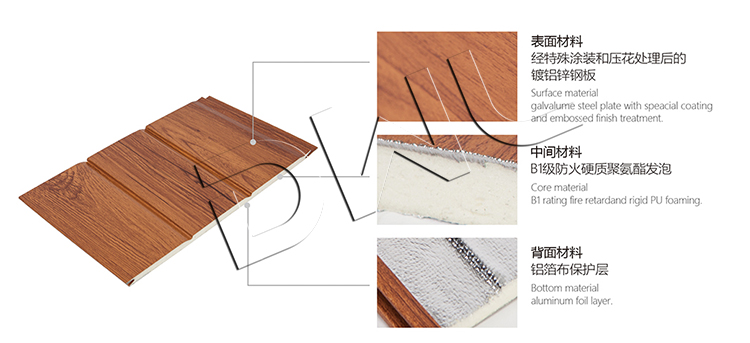 Customized appearance: The outer surface of the sandwich panel is customizable in pattern and color. This feature can be used with a variety